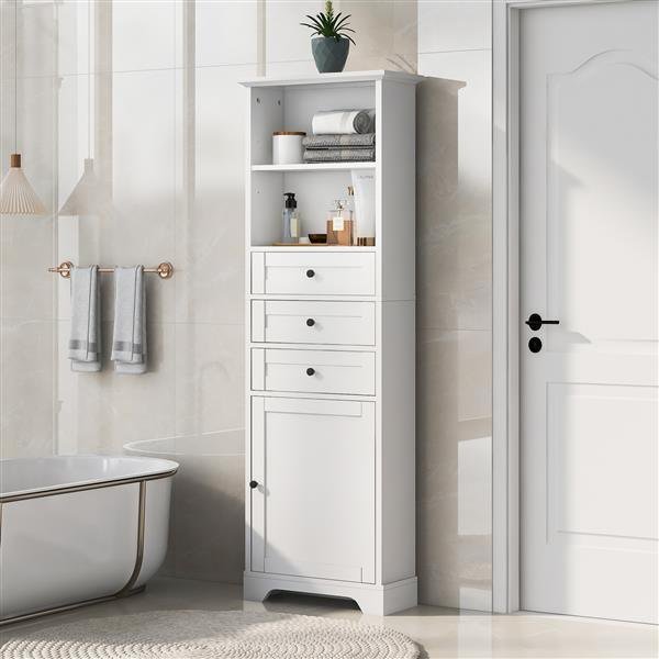 20" CARRY-ON/ 24" 28" CHECKED LUGGAGESize:20" 13.8 x 8.3 x 21.5"24" 16.2 x 10.2 x 25.1"28" 18.5 x 11.6 x 29.5"Sets can be stored inside each other.The carry-on size dimensions will meet most airline approved.HOW DO I RESET THE COMBINATION LOCK1. The lock is set to 0-0-0 at the factory.2. Locate the reset button adjacent to the dials, push it and hold while you rotate the dials to your desired 3-digit code.3. Release the reset button and your code is now set.4. Scramble the dials and test your new code to be sure the correct one is set.Material: The cabinet is made of high-quality MDF boards with painted finish. Thus, the surface is water-proof, smooth and easy to clean. Metal black knobs are convenient to open or close the drawers and door.Various Storage Space: Open storage shelves, three big drawers and one enclosed cabinet below allow customers to put many different kinds of daily essentials to keep the room clean and tidy. In order to improve using experience, the drawers are equipped with slides.Wide Application: Not only focusing on functionality, the design of this tall storage cabinet is also simple and elegant. The details such as decorative top, arc base, groove pattern etc., reveal graceful temperament. It is suitable for various environment, for instance, bathroom, kitchen, dining room, living room, or study.Adjustable Shelves: The shelf of this cabinet can be adjusted into three different heights and to hold items in different size. You can put shampoo, towel, body lotion, tissues and storage basket etc., which totally satisfies customers' different needs.Anti-toppling Device: This cabinet comes with an anti-toppling device that make the cabinet be attached to the wall to prevent accidental toppling, which can protect customers and children from hurt.Package & Easy Installation: Assembly is required. There are holes reserved in the MDF boards for easy installation. What's more, the install instruction manual and hardware pack will come along with the product to help customers' accomplish installation.